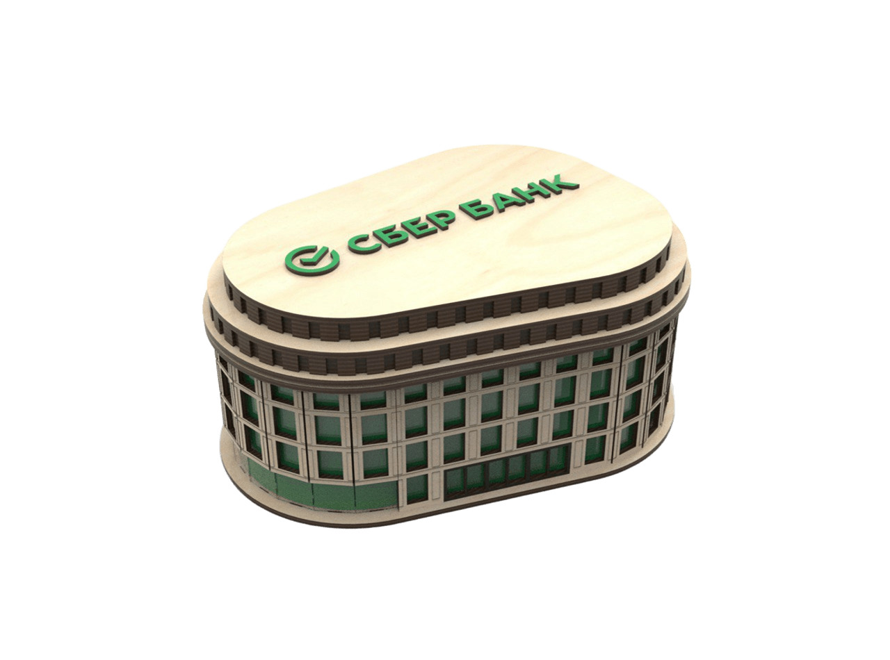 Стоимость изделия зависит от тиража и сроков изготовленияКоробка выполнена из прочной фанеры в виде здания головного офиса компании. Идею можно взять за основу и сделать любой узнаваемый объект вашего бизнеса. Размер изделия и его форма осуждаются индивидуально.